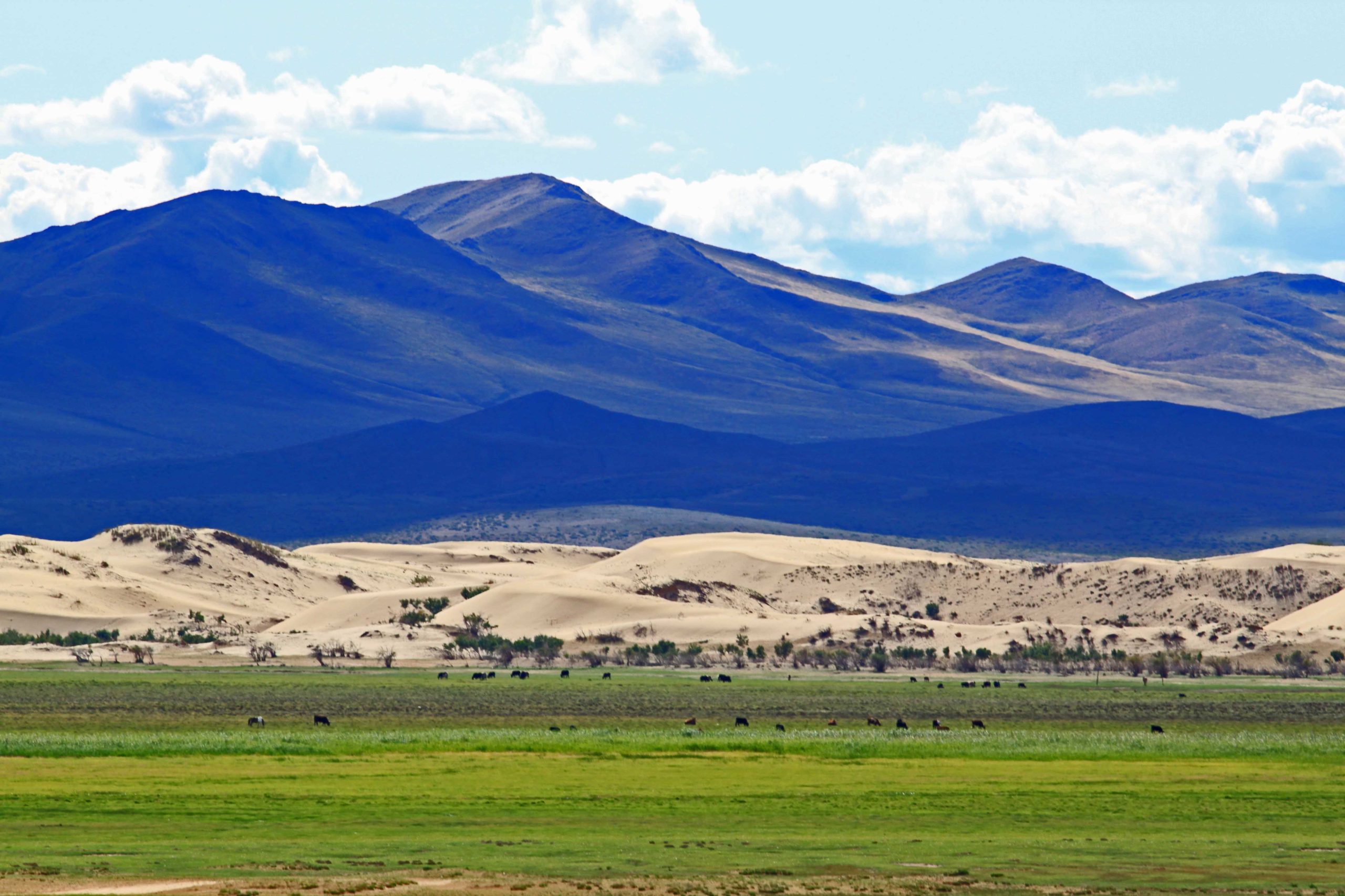 After lunch at the camp, drive to Murun from Khatgal Village, and you will be transferred to the domestic airport. On arrival, the service team will meet you at the airport and head west to the Mongol Nomadic ger camp. BLD